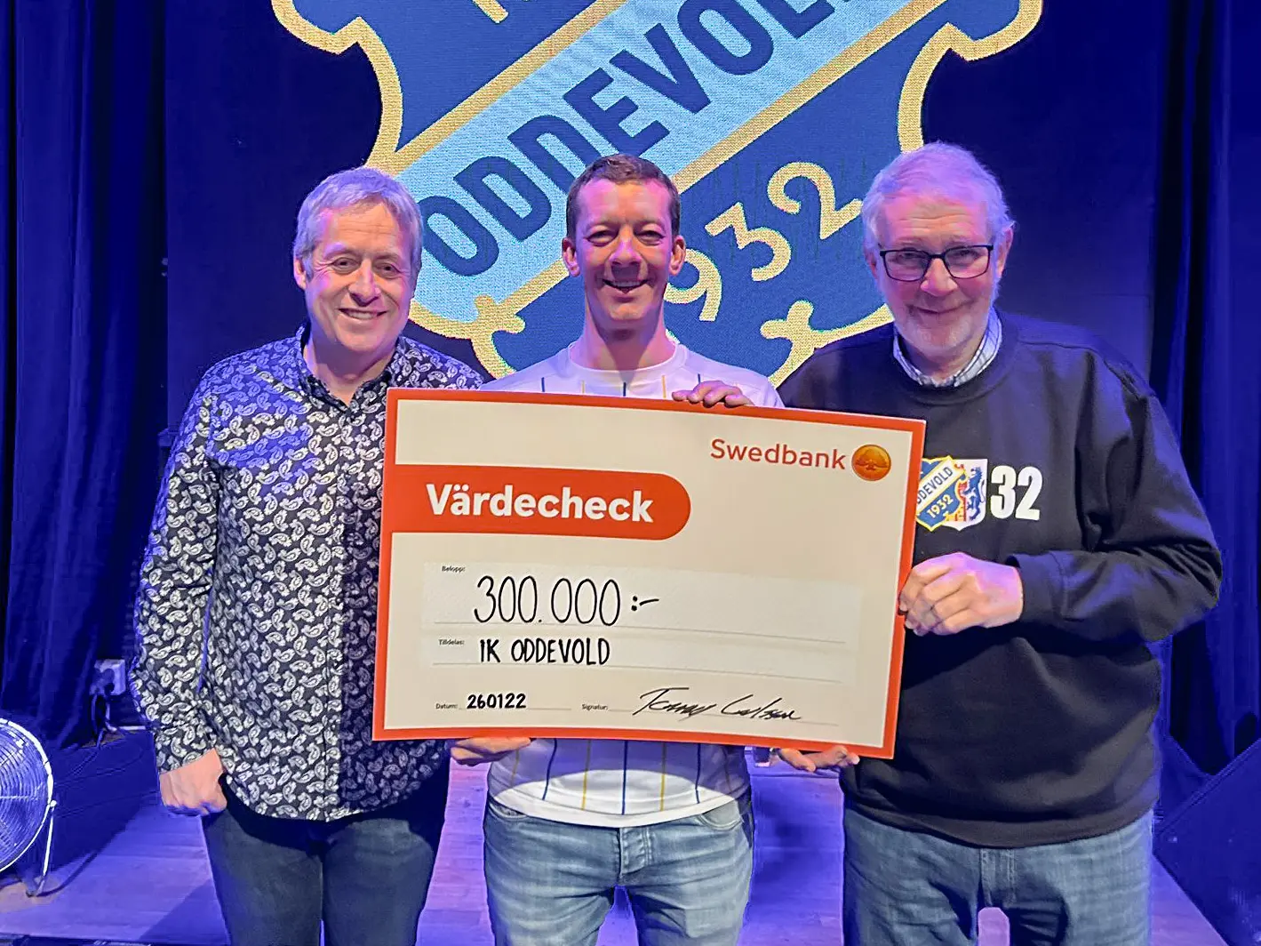 Idag har Lars Olsson & André Larsson från Oddevold Grunden tillsammans med klubbchef Daniel Wilhelmsson varit och tagit emot en check på 10,000 kr från Projekt Fjordto...