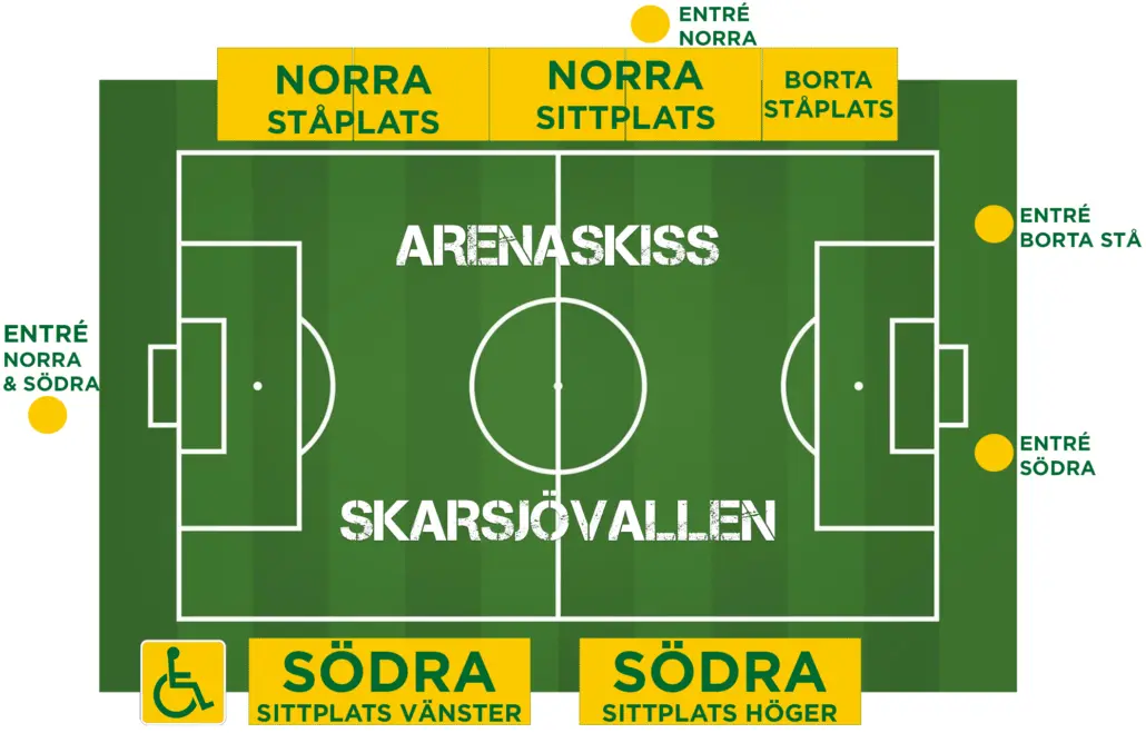 Sektion C (Borta stå) har en egen sektion och egen entré. Parkering sker på grusplanen på bortre sidan av arenan.