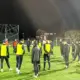 De båda lagen står uppradade för presentation innan matchen börjar.